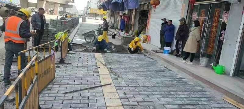 近日,新長線K170+632益林鎮道口平改立工程進行到面包磚鋪設,工人們有序的進行施工。