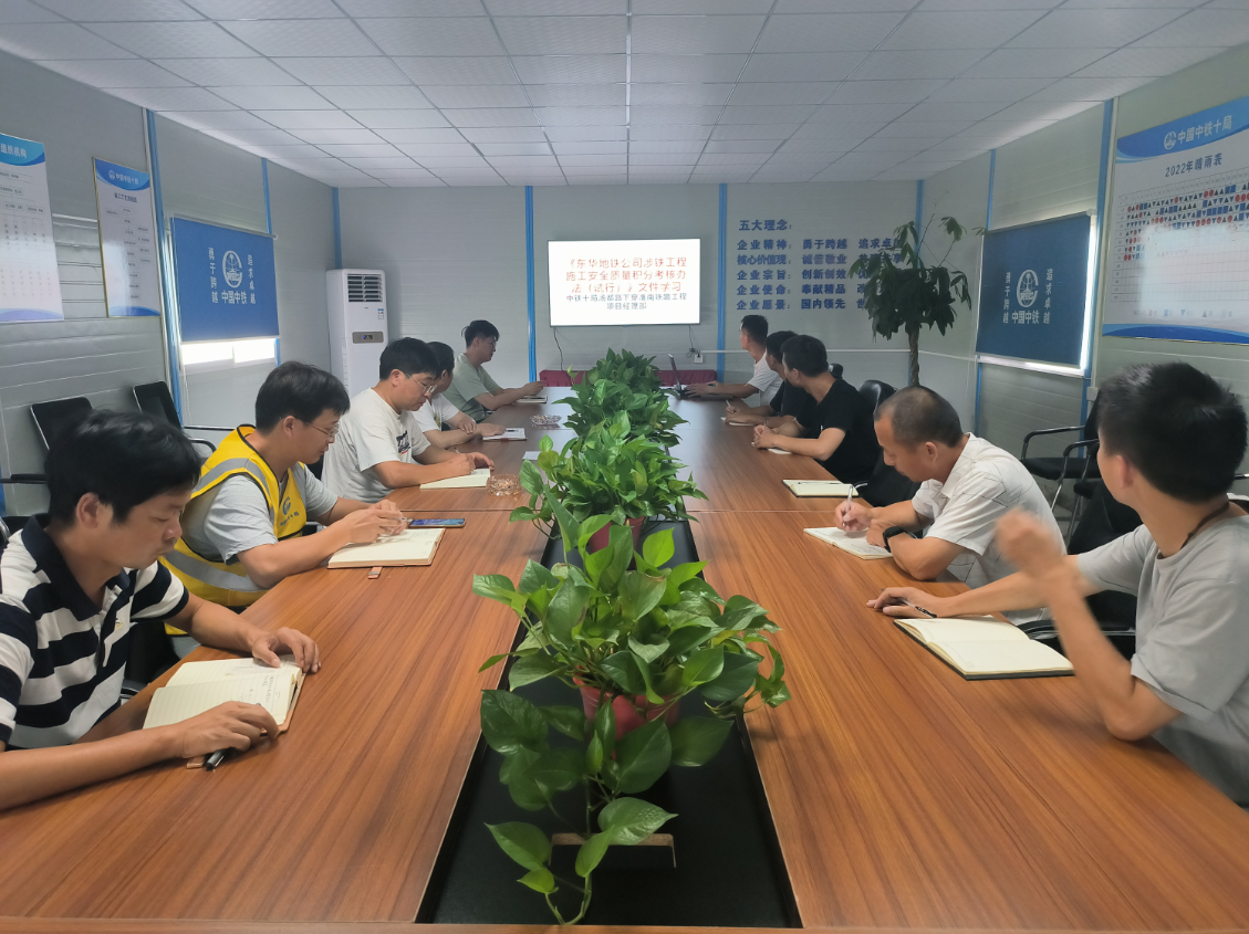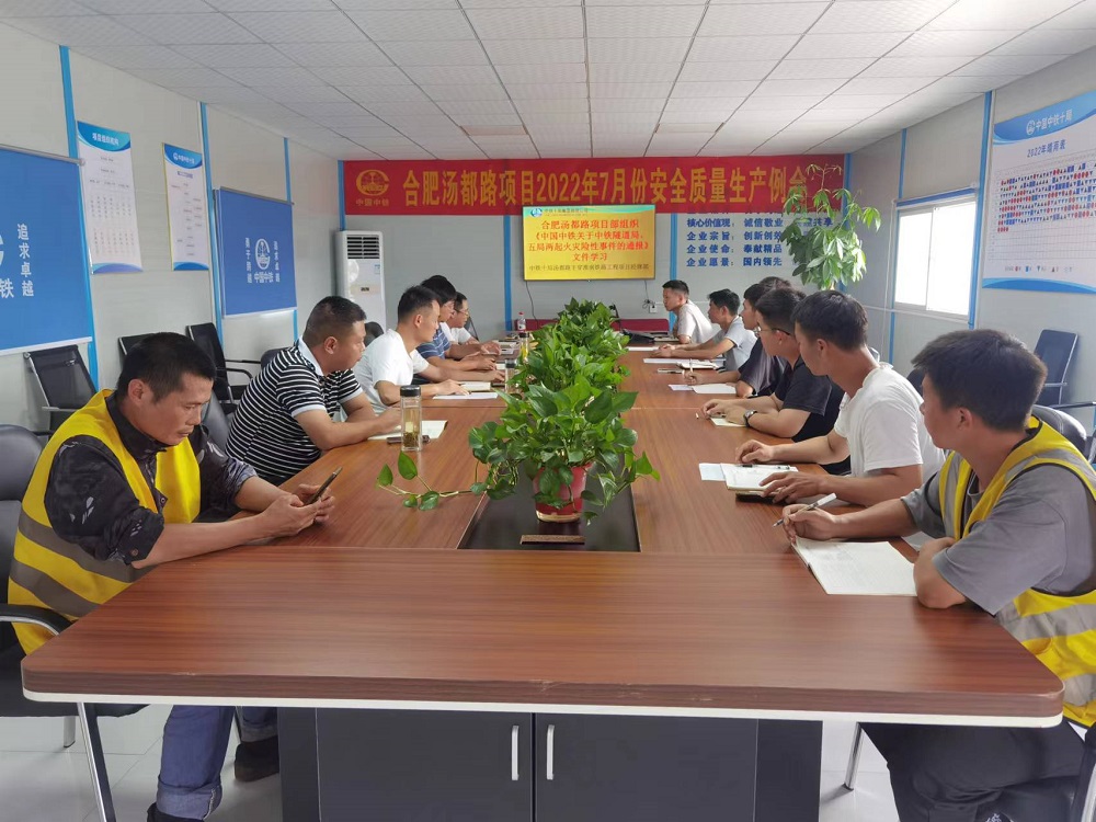 合肥市湯都路下穿淮南鐵路工程項目部文件學習,分別學習了《東華地鐵公司涉鐵工程施工安全質量積分考核辦法(試行)》、《中國中鐵關于中鐵隧道局、五局兩起火災險性時間的通報》,重申安全文明施工的重要性和必要性。